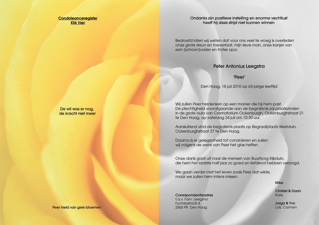 Voor ons allemaal stond vast dat een stijve, traditionele rouwkaart niet bij Peer pastte.