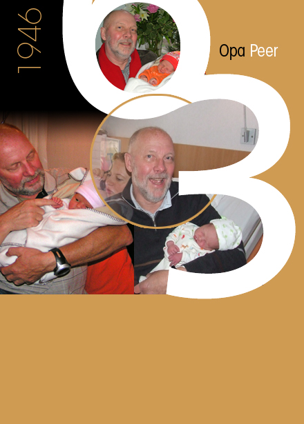 Opa PeerDinsdag 5 september 2006 werd Peer opa van Loïs Isa Kortekaas.Hij kon zich er van tevoren niks bij voorstellen, maar na haar geboorte werd Loïs zijn "alles"! Hij zag haar het liefst elke dag, maakte duizenden foto's van haar, keek elke dag op haar website en was zoooooo trots en verzot op zijn "koekie". Zijn tweede kleinkind liet lang op zich wachten, het wilde Christel & Daan maar niet lukken om zwanger te raken. Maar uiteindelijk was daar het bijzondere nieuws en ongelooflijk maar waar: op de dag dat Chris & Daan dit mooie nieuws aan Peer & Mike wilden vertellen, kreeg Peer te horen dat hij ongeneeslijke kanker had. Hij beloofde Chris op die dag dat hij er alles aan zou doen om de geboorte van zijn tweede kleinkind te halen. En waar iedereen dacht dat het een kleinzoon zou worden, was het Peer die er als enige van overtuigd was dat hij weer een kleindochter zou krijgen. En hij had gelijk! Op zaterdag 12 januari 2008 werd Kate Milen Nutbeij geboren. En tegen alle verwachtingen in mocht hij ook nog de geboorte van zijn derde kleindochter mee maken: op 13 april 2009 werd Carmen Noa Kortekaas geboren. Een vrouw, twee dochters en drie kleindochters, heel wat girlpower om tegen op te boksen ;-) Hij was trots als een pauw op zijn kleindochters en haalde altijd allemaal gekke trucjes uit om hen aan het lachen te krijgen, wat ook altijd lukte. Zijn kleindochters waren tot de laatste fase van zijn leven het enige waar hij nog van kon genieten. Zij konden als enigen nog een glimlach op zijn gezicht toveren en zijn ook de voornaamste reden waarom Peer zo aan het leven wilde vast blijven houden en zijn naderende dood niet kon accepteren. < terug naar 63 jaar Peer |